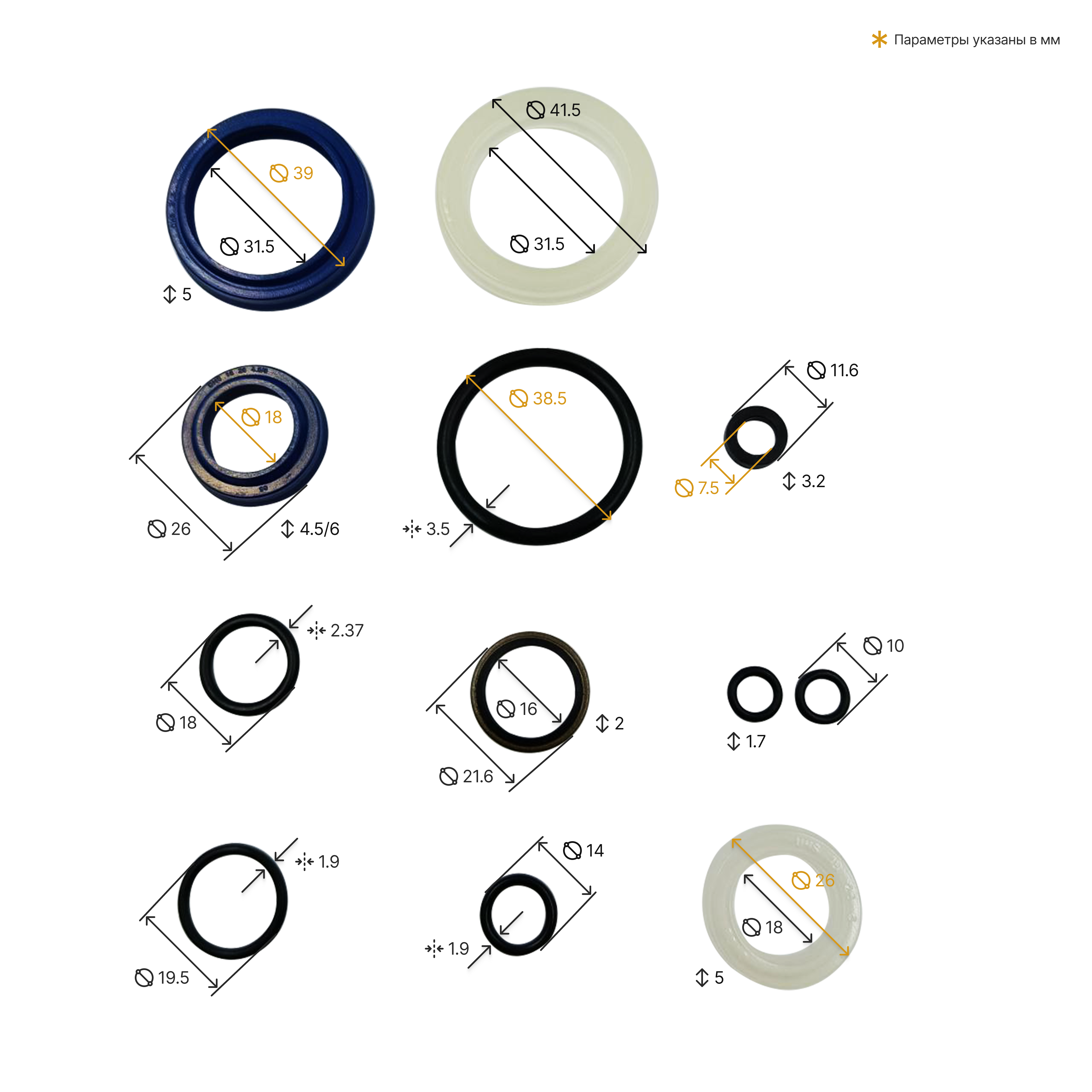 Комплект запасных частей для восстановления работоспособности гидравлического узла. Включает основные элементы, необходимые для ремонта и обслуживания. Подходит для гидравлических тележек различных брендов и моделей.